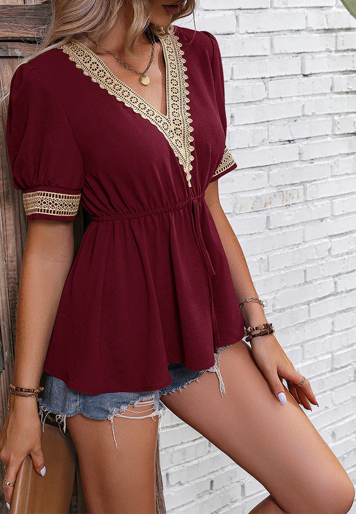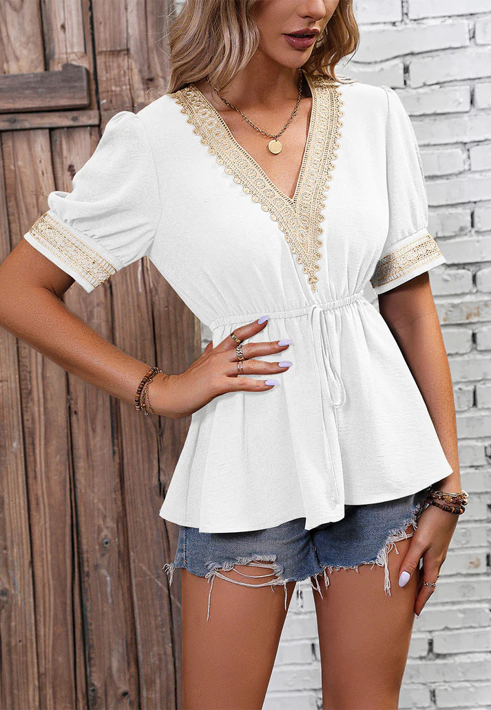 Levoire | T-shirt d'été élégante à col en V à manches longues