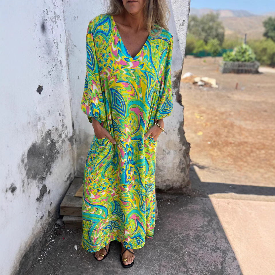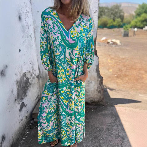 Levoire | Élégante Femmes Printemps Été Imprimé Robe V-Décolleté