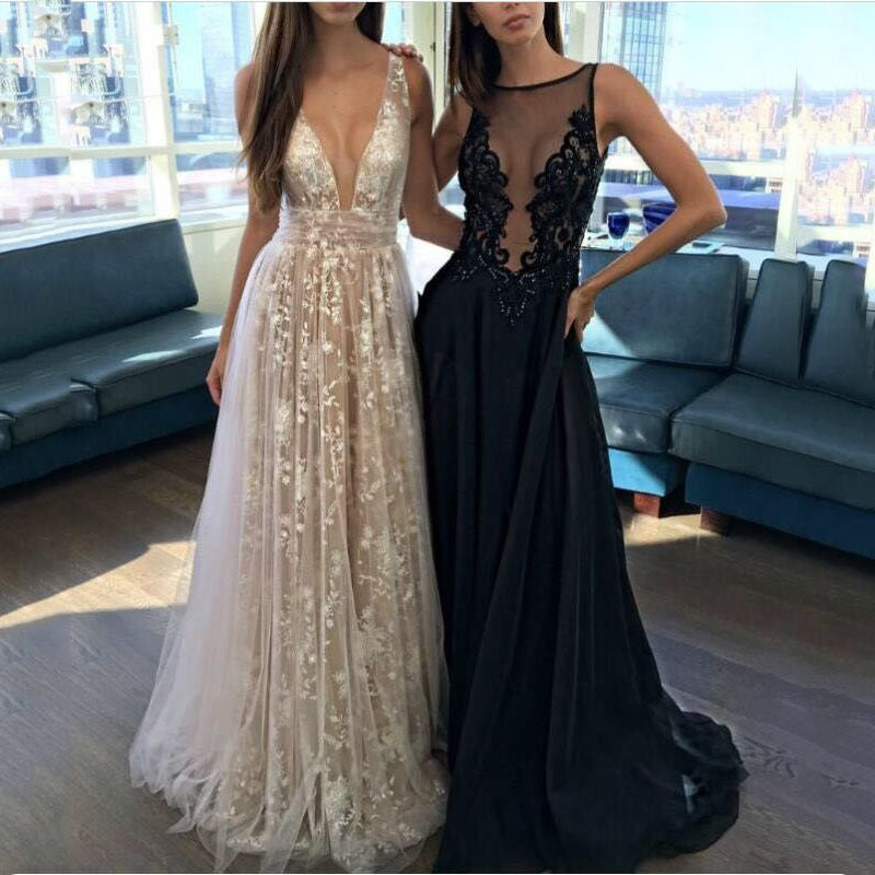 Levoire | Robe de soirée dos nu en dentelle glamour à décolleté profond