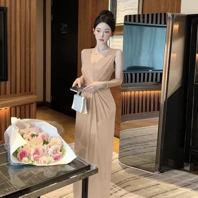 Levoire | Magnifiquement conçu robe à encolure en V plissée irrégulière