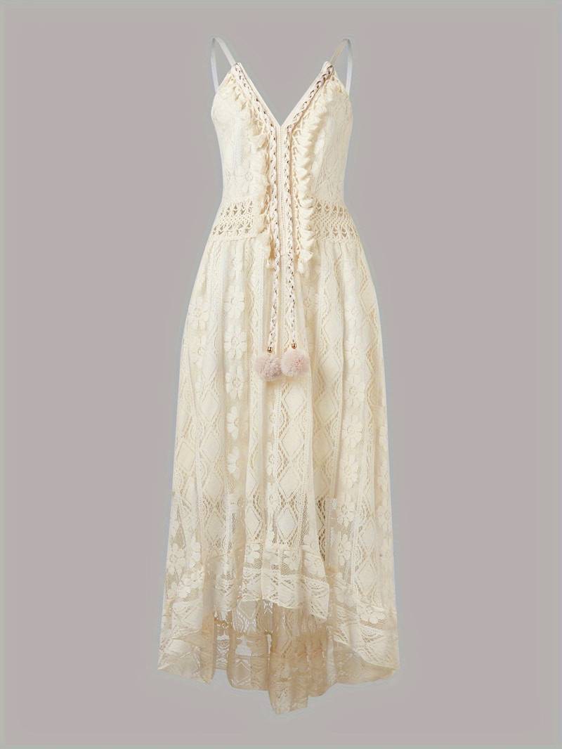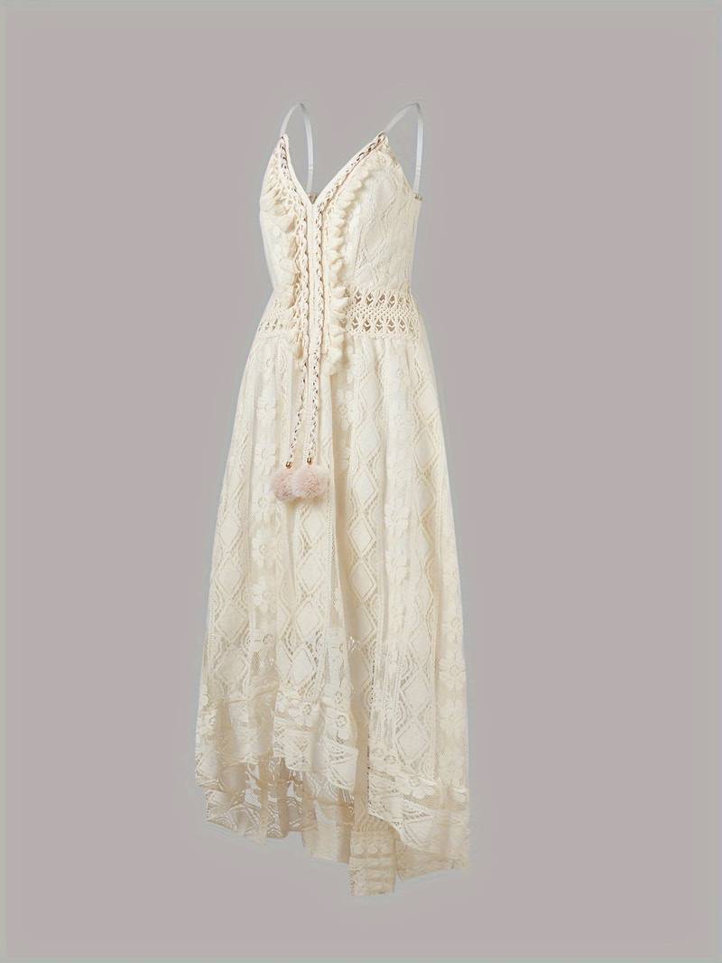 Levoire | Robe Maxi Boho D'Été Avec Bretelles Spaghetti Et Décolleté En V