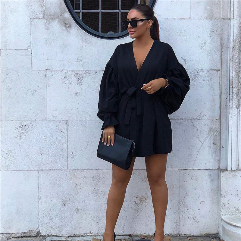 Levoire | chemises à manches longues courtes à col en V avec ceinture