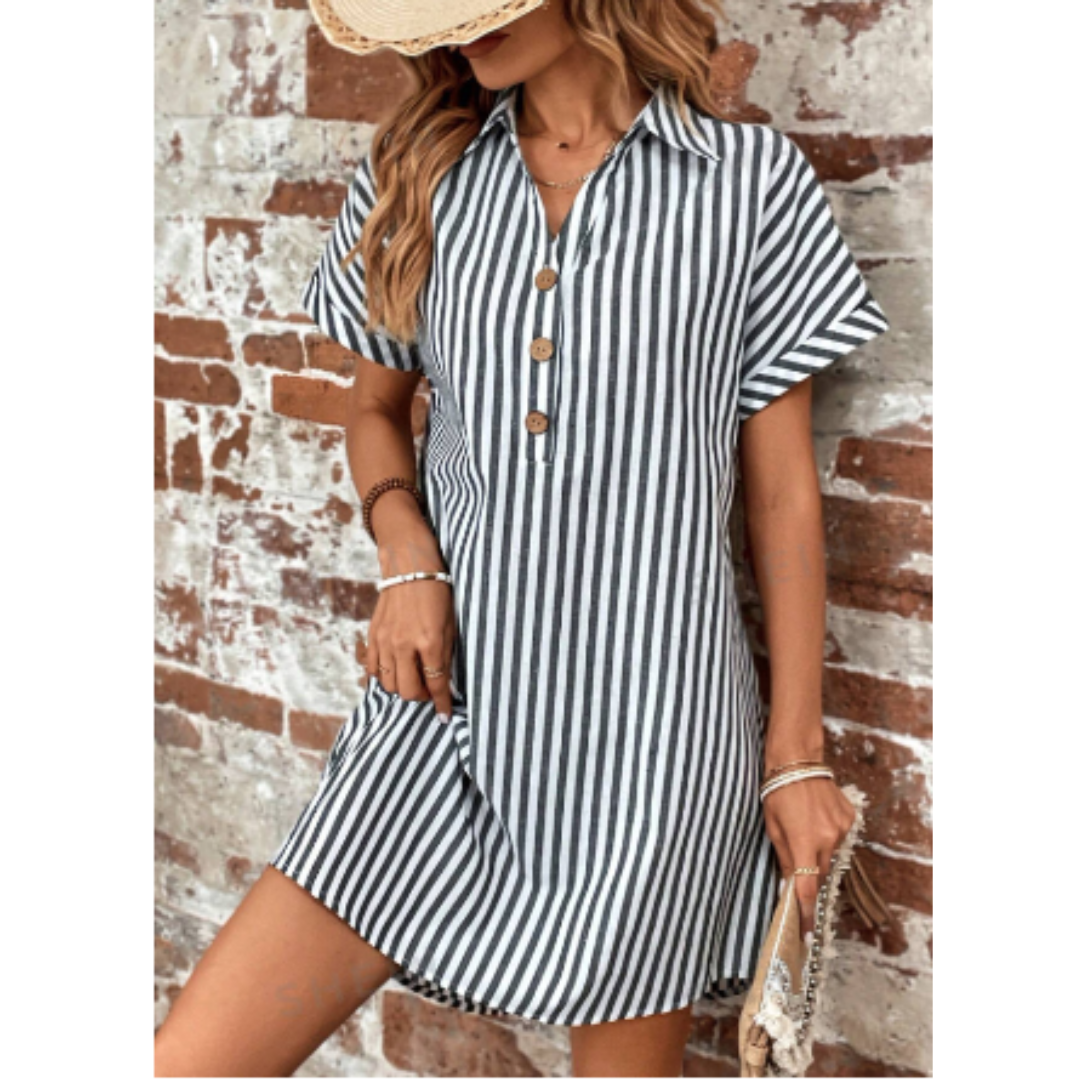 Levoire | Robe à boutons à rayures verticales pour femmes