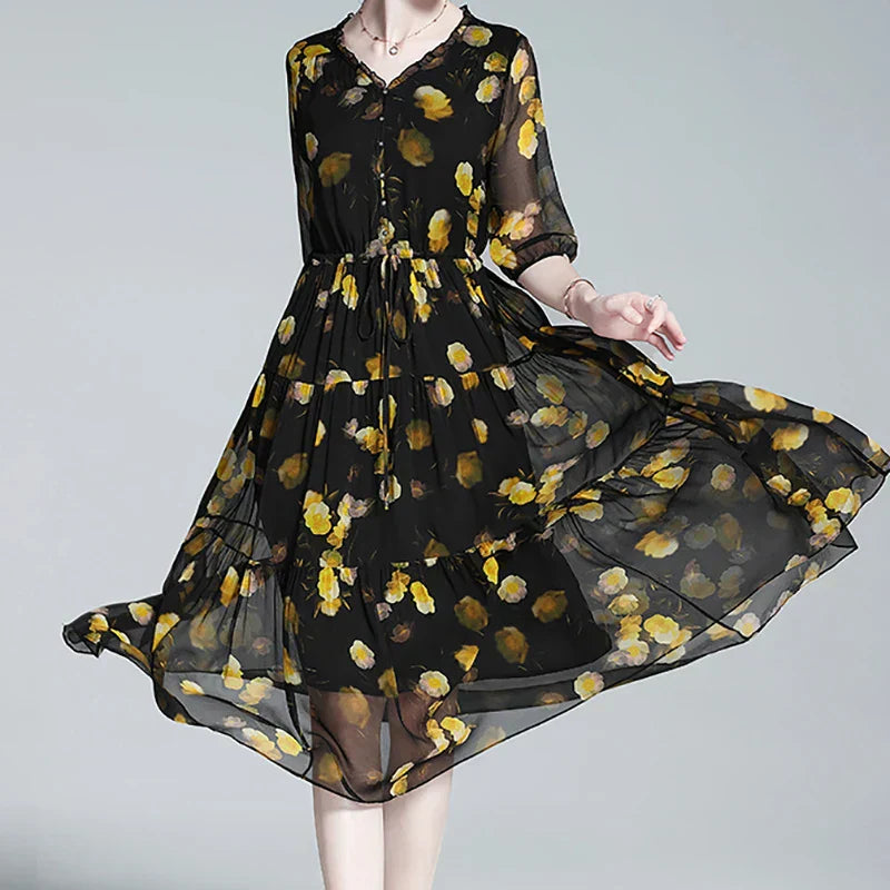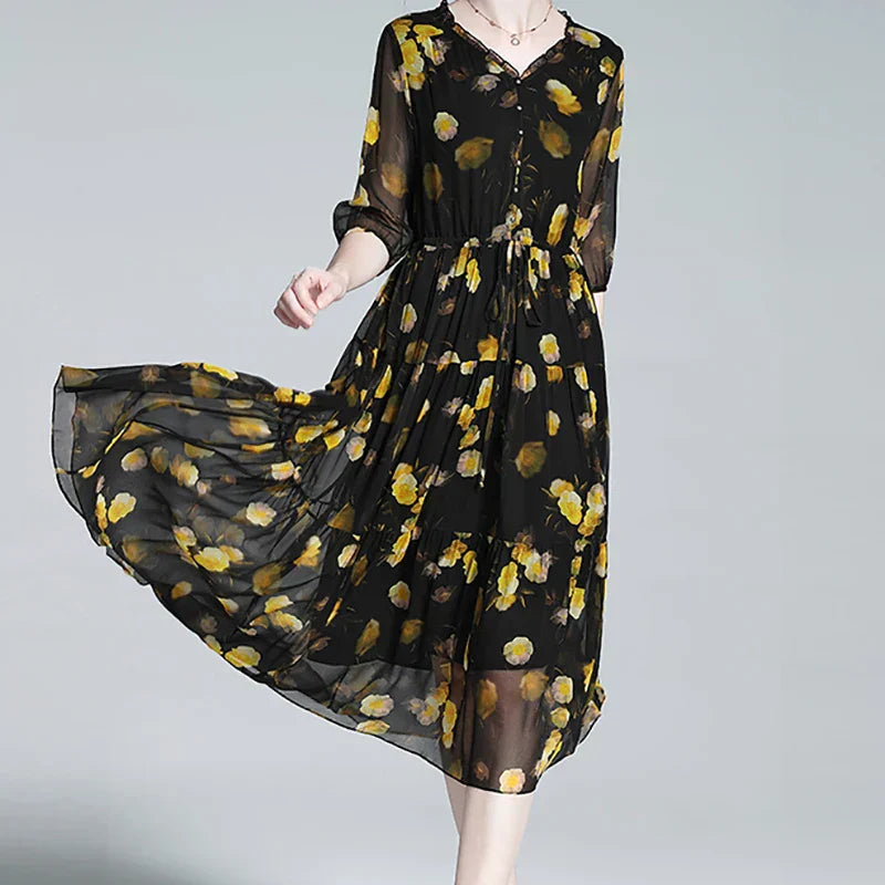 Levoire | Robe en mousseline florale pour femmes - Noir