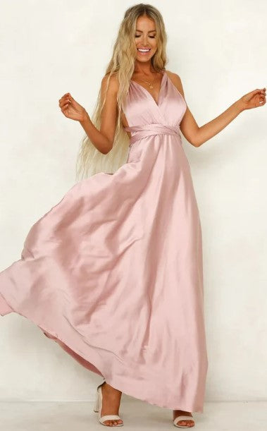 Levoire | Robe Maxi Sans Manches En Satin Avec Décolleté En V Et Taille Fine