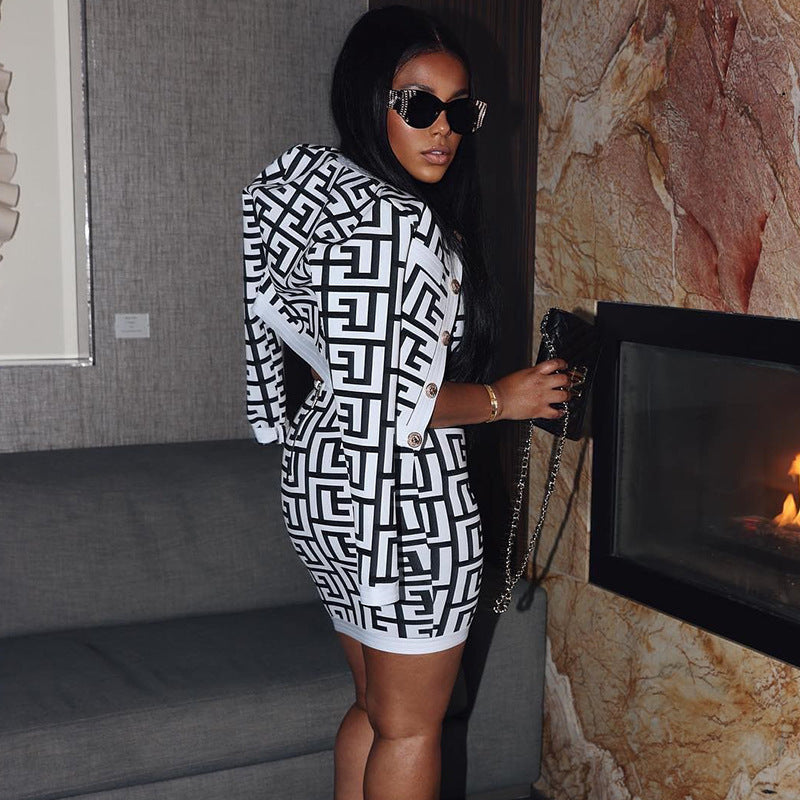 Levoire | col rond à boutons, à manches longues et jupes courtes