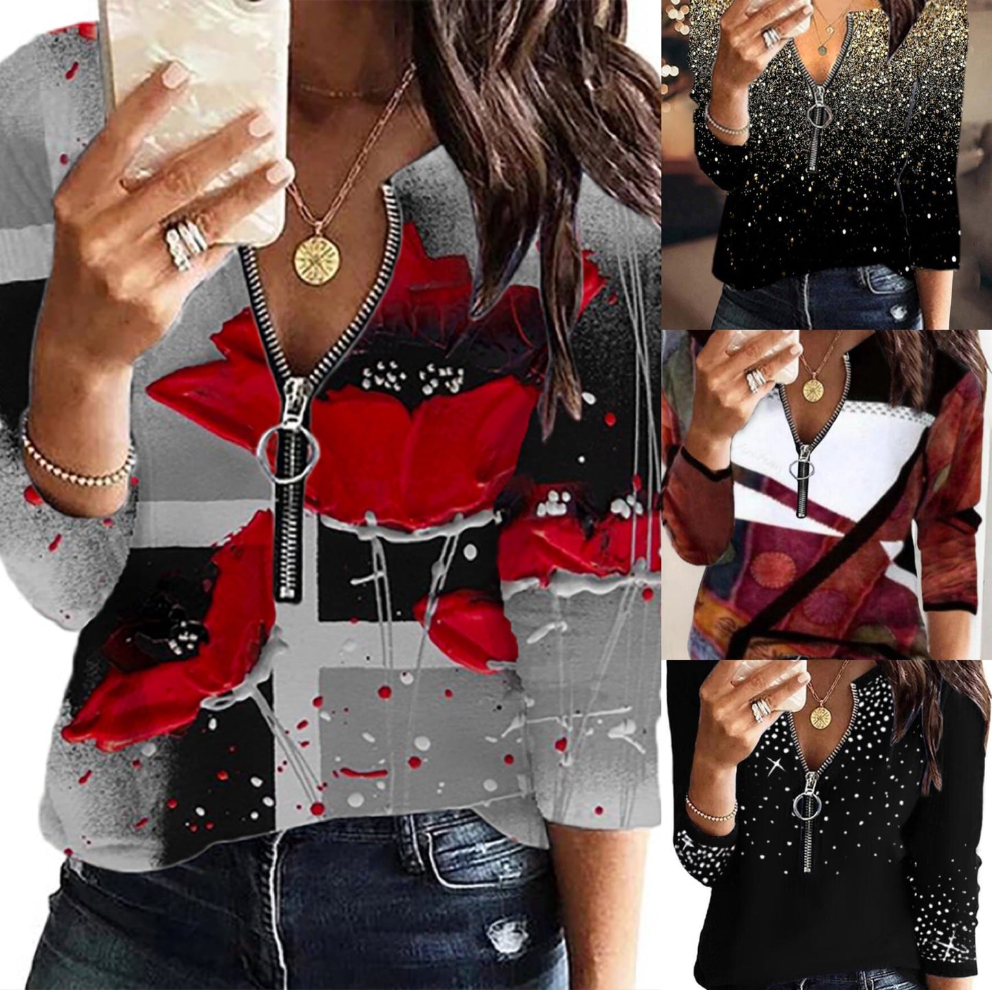 Levoire | Rennokas imprimé à manches longues T-shirt zippé