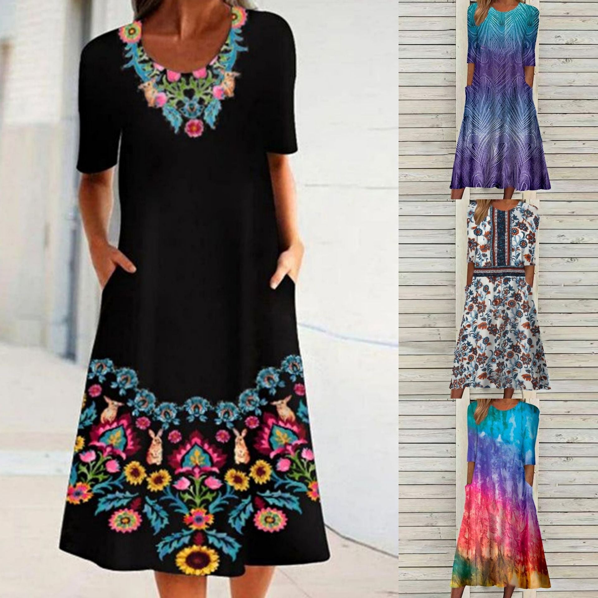Levoire | Robe à imprimé rentouksinen à col rond à manches courtes avec poches