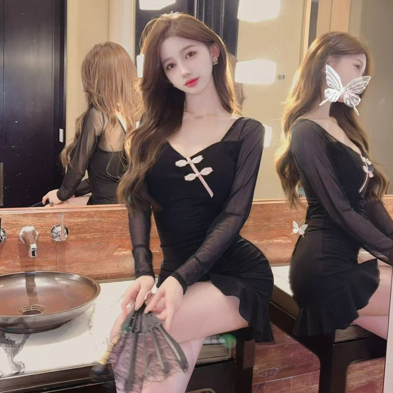 Levoire | Sexy Réseau Manche Longue Robe Bodycon en Coton
