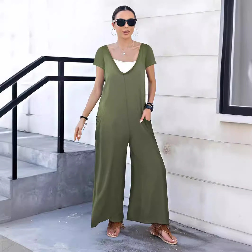 Levoire | Tendance Printemps Été Uni Patches Sac Décolleté en V Salopette