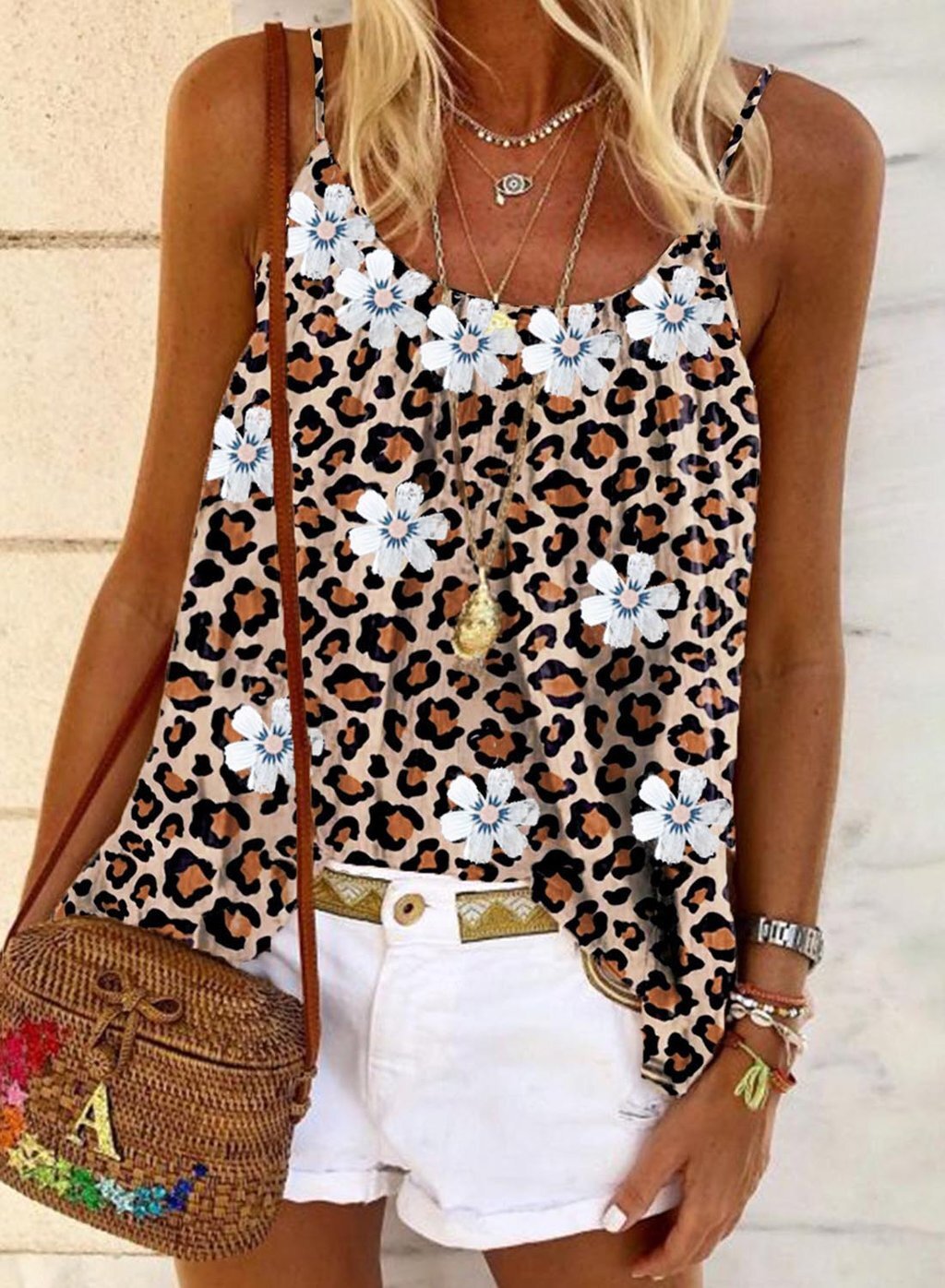 Levoire | Trendik Populaire Fleur Léopard Imprimé Spaghetti-Top