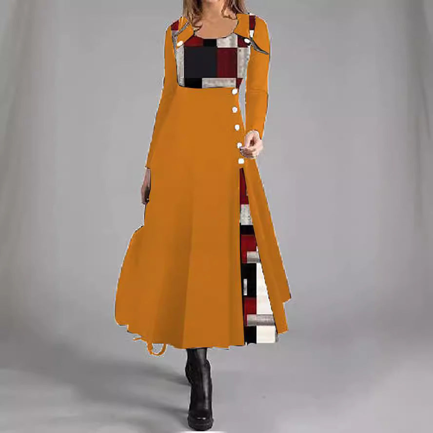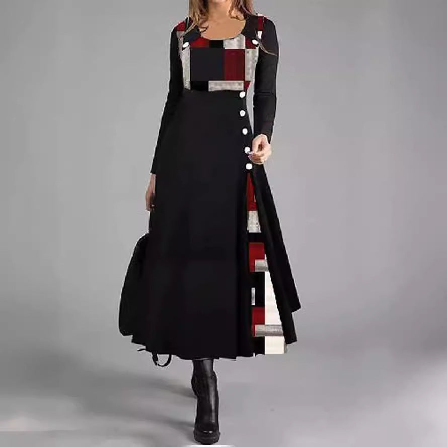 Levoire | Chic V Couleur graphique bouton rond Flare Robe